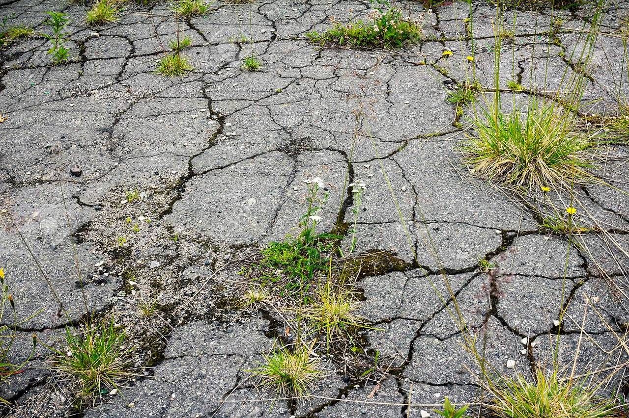 근데 그 콘크리트가 조금 부서지고 깨어져서 그 사이로 작은 잡초들이 자라나 있는,